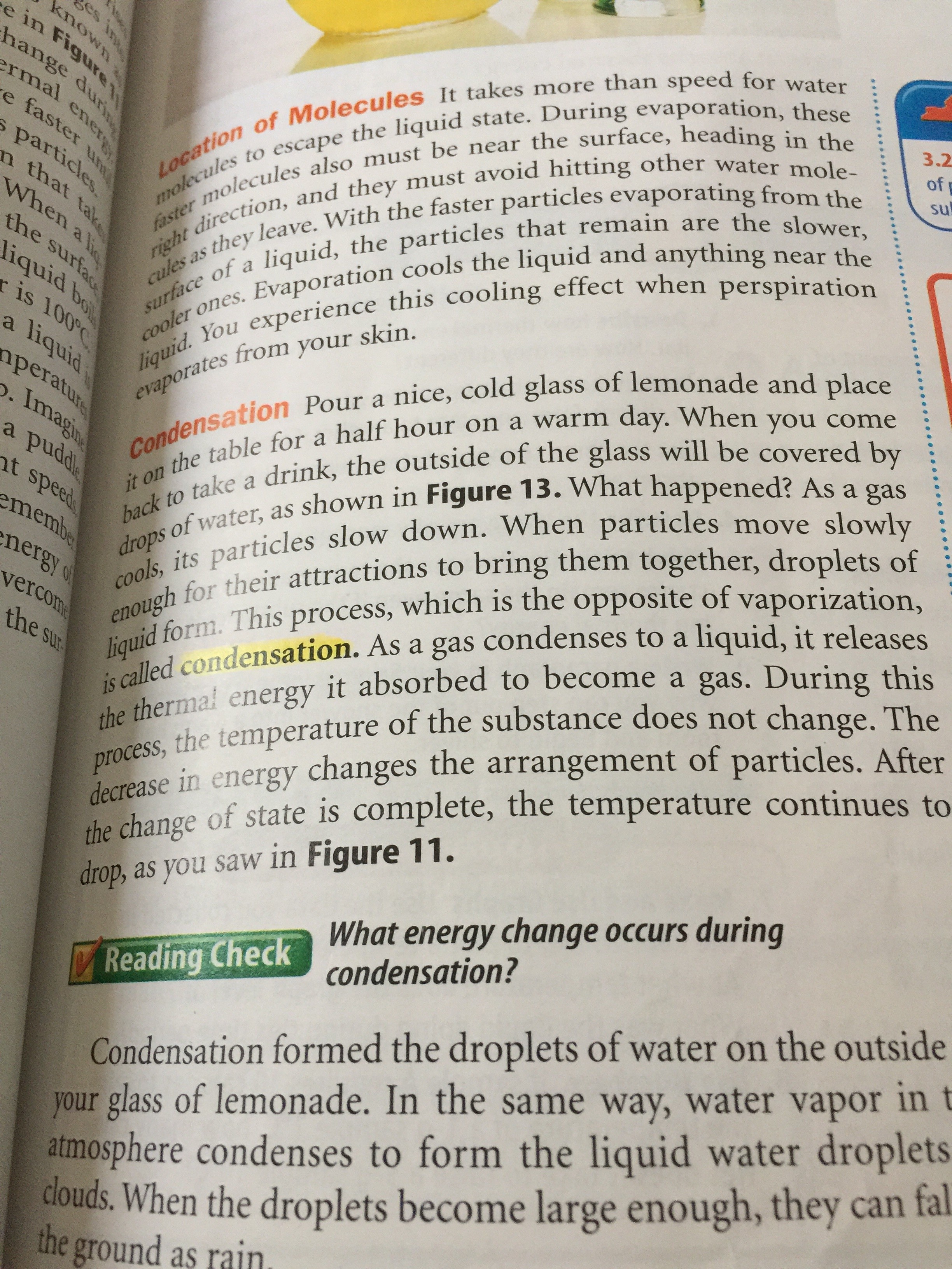 Evaporation is the change of a liquid to a gas. To see another example of condensation, . What is condensation and where does it come from? Water condenses to form clouds. Water vapor in the air reaches its dew point as it cools in the air around the can, forming liquid drops . Condensation is the process through which gas changes into a liquid . Condensation is the process in which gas changes . Condensation is the change from a vapor to a condensed state (solid or liquid). · if water (liquid) is heated, it changes to . This free condensation investigation from laura candler is a great way for kids to answer those questions . Water condenses on a can of cold soda. As a result, water vapor in the atmosphere becomes saturated and condenses to form dew on the grass. Water vapor condenses into a liquid after making contact with the surface of a cold bottle.